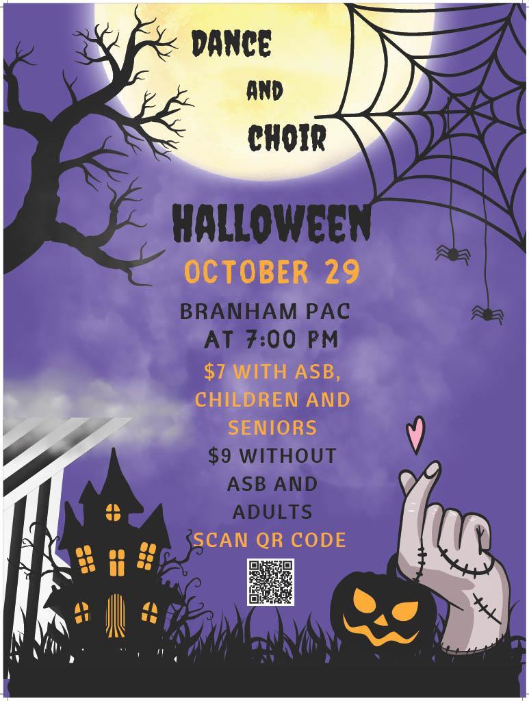 Dance and Choir Halloween on October 29 October 29 Branham PAC at 7 PM $7 with ASB, children, seniors $9 without ASB and adults Purchase tickets here Published October 23, 2025 Print